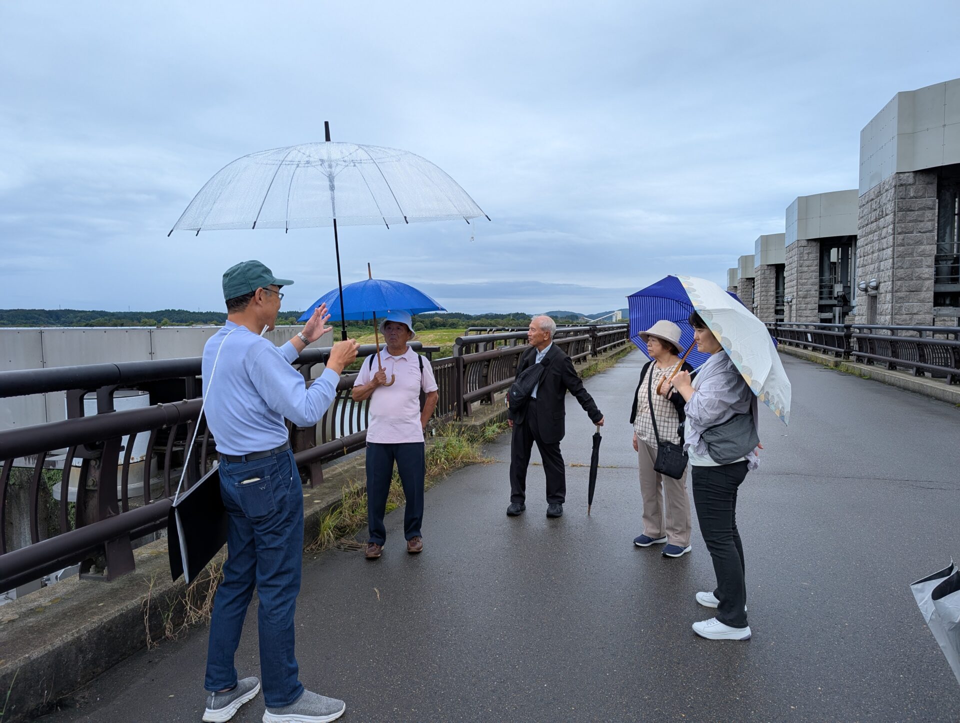 秋の資料館周辺めぐり2回目は10月5日(日)に開催しました。信濃川の水量を調節している新旧洗堰コースを巡りました。昔の写真と見比べながら堰の役割や技術の変化を学び、ガイドの説明に「へぇ~」の驚きの声が何度もあがっていました。特別に堰の操作をしている大河津出張所の操作室に入り、現在の水量はどのくらいか、堰の操作方法、洗堰の閘門はいつ使われるのか等を教えていただきました。前半は曇り空、後半は雨となってしまいましたが、皆さん真剣に聞いていらっしゃいました。ご参加いただき、ありがとうございました。