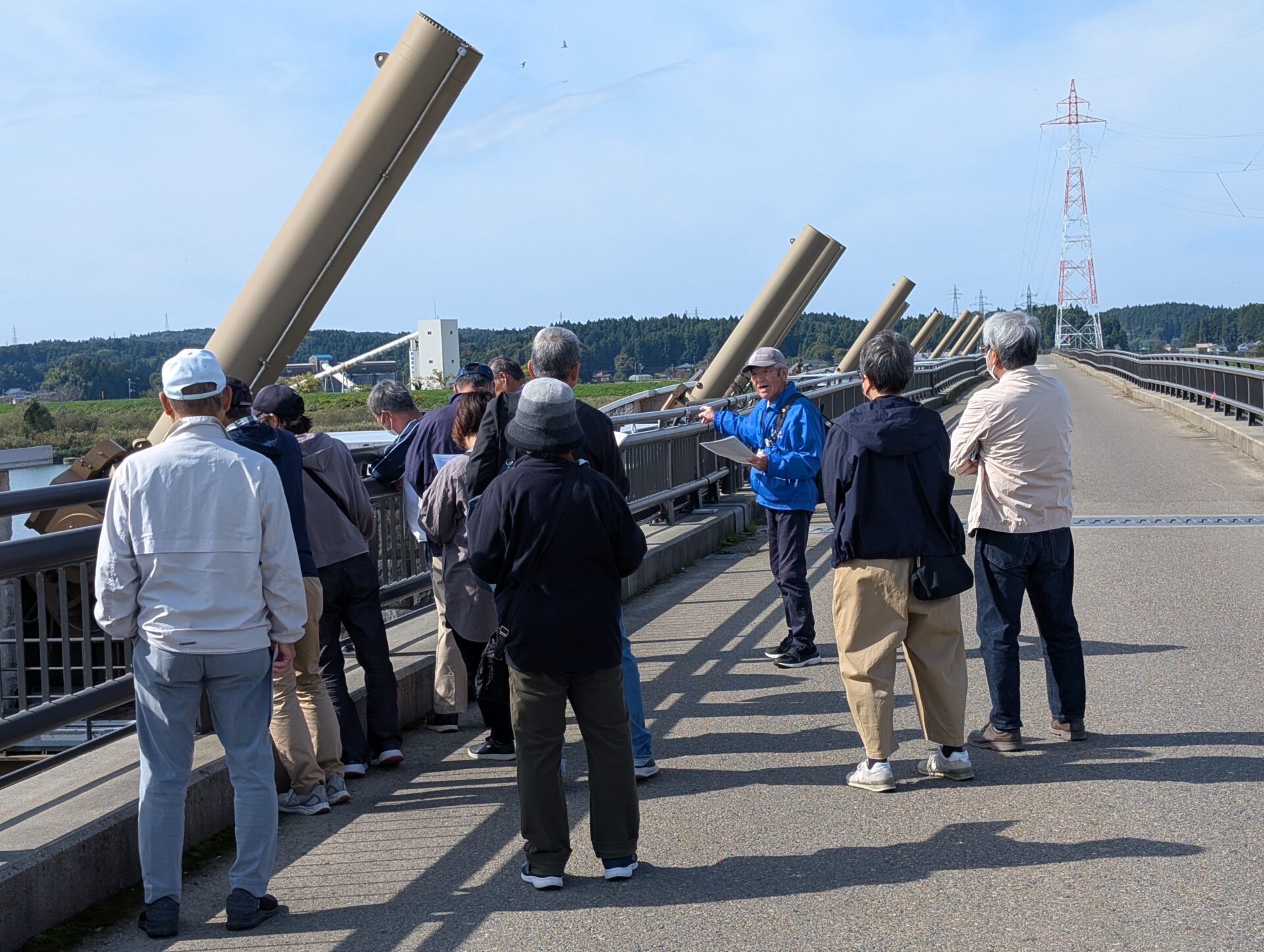 秋の資料館周辺めぐり3回目は10月25日(土)に開催しました。当日は素晴らしい天気で清々しい陽気になりました。今年度最後の資料館周辺めぐりは、大河津分水路の水量を調節する新旧可動堰コース約1.5kmです。参加された皆さんと和気あいあいと話しながら楽しい時間を過ごしていただけたようです。ナビゲーターの詳しい説明も分かりやすく勉強になったと感想をいただきました。